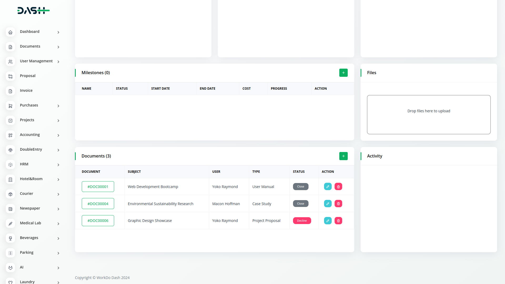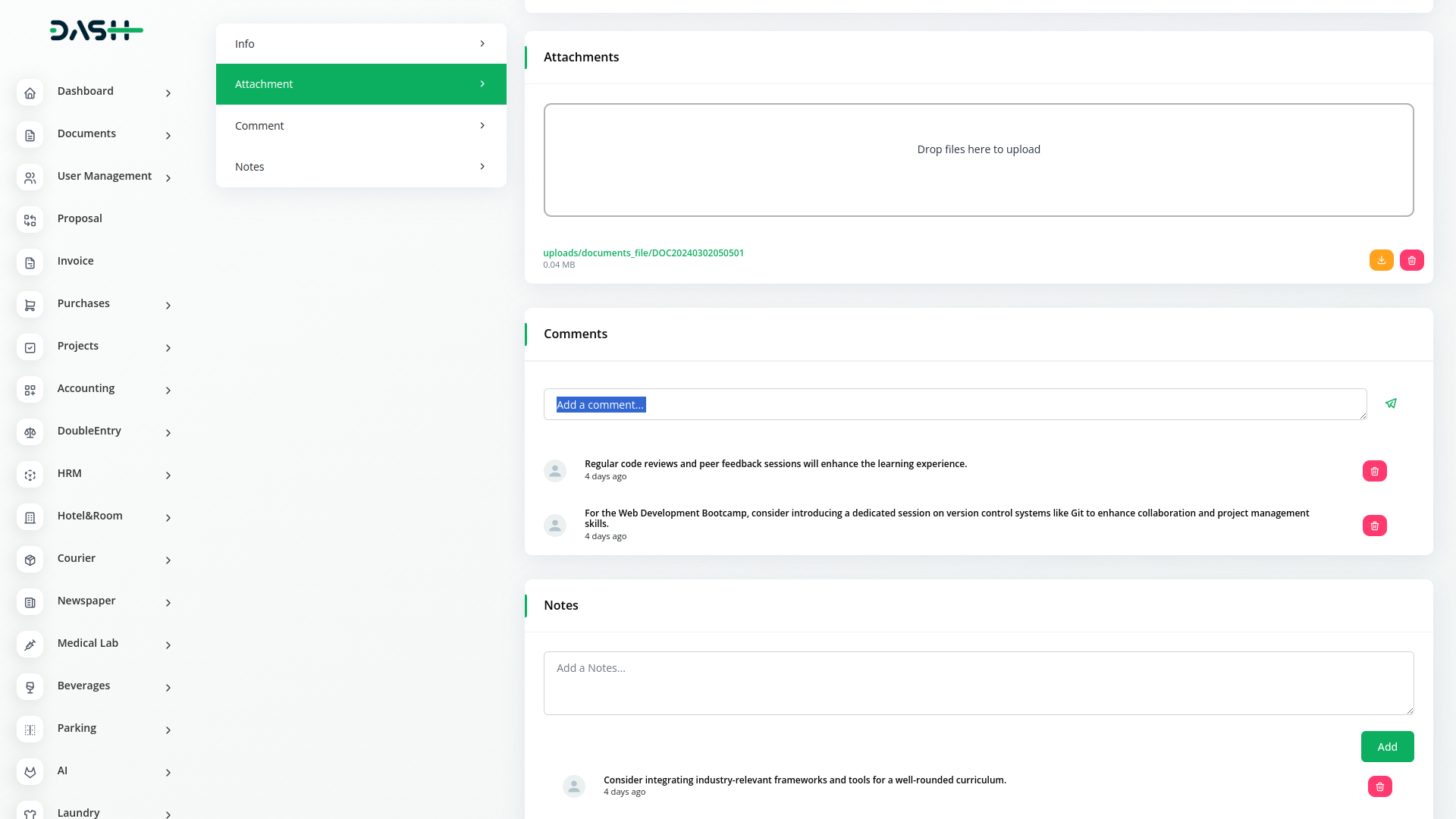 Experience the seamless integration of Dash SaaS's Documents Integration with the Project Module, revolutionizing project document management. Effortlessly link project-related documents, streamline collaboration, and enhance transparency within your project teams. With centralized document organization and project-centric features, empower your teams to achieve greater productivity and efficiency in project execution.